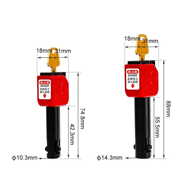Блокиратор миниатюрных автоматов DPR1 малый, подходит для большинства однополюсных и много- полюсных автоматов европейского типа с размером отверстия предохранителя 10 мм. Блокиратор очень легок и прост в использовании, вставляется в отверстие предохранителя до щелчка и запирается ключом. Изготовлен ABS пластика и полиамида. Подходит для автоматов до 60А. Ключ и тело блокиратора имеют одинаковый уникальный номер для простой и быстрой идентификации.
